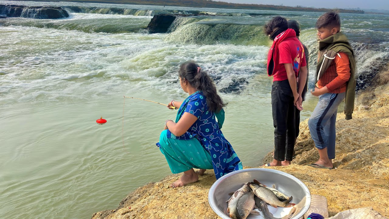Fishing Video🎣🎣|| Beautiful cute lady fishing in the river with a hook || River fishing Video #fish