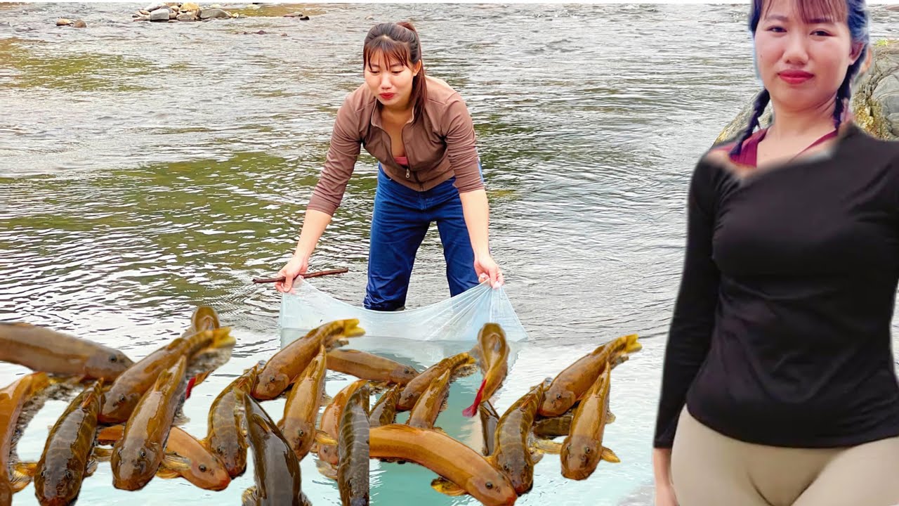 The unique way to catch stream fish, Fishing Alone | Vietnamese girl outdoor